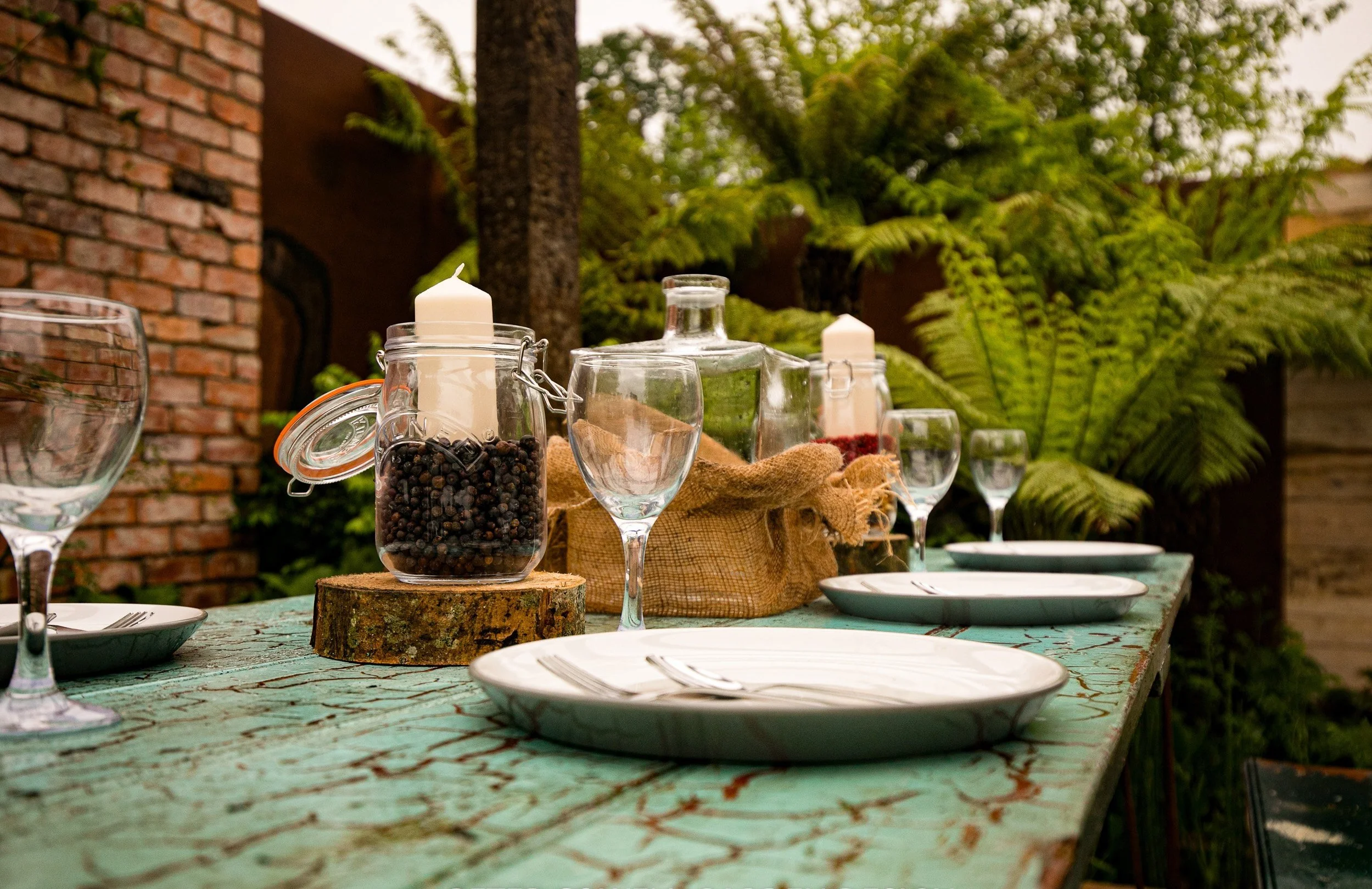 Here we wanted to create a real space for socialising, with an area for some more quiet time. The feature of the quiet area was an old whiskey barrell hot tub. We can confirm it was fully functioning as we both enjoyed a dip!